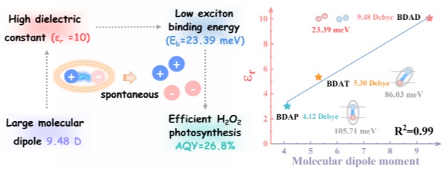 Boosting Exciton Dissociation in H₂O₂ Photosynthesis via High-Dielectric Linear Conjugated Polymers (εr > 10) Yingxin Guo, Yuming Dong*, Jiawei Zhang, Bing Liu, Chengsi Pan, Hui Zhao, Guangli Wang, Zhenhui Kang, Yongfa Zhu, Jian Liu Applied Catalysis B: Environmental and Energy 316(2026) 121393 DOI: